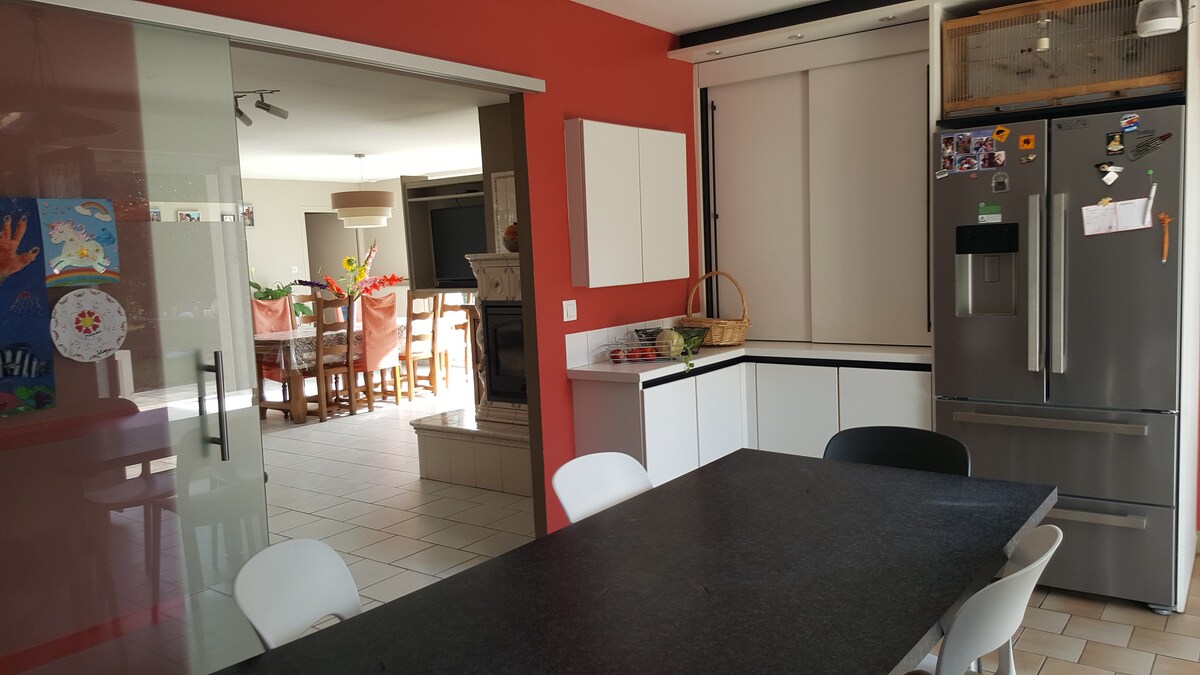Rumah cerah di pedesaan di rumah pertanian alun - alun tua dengan ruang hijau dan hutan besar 2 menit dari Cateau - Cambrésis. 3 kamar tidur, ruang tamu besar dengan dapur terbuka lengkap (induksi, Nespresso,mesin cuci piring, gudang anggur) Kamar tidur 1: 1 tempat tidur 200x180 2: 1 tempat tidur 140x180 Kamar Tidur 3: 1 tempat tidur 90x180 Perlengkapan bayi tersedia (tempat tidur bayi, kursi tinggi, bak mandi) Seprai dan seprai disediakan Mesin pencuci dan pengering Teras dan gas BBQ area kantor tersedia