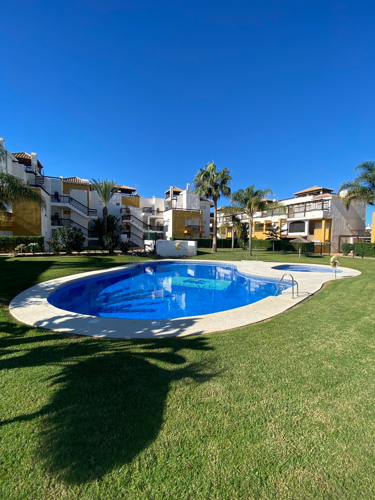 Seluruh keluarga Anda akan bersantai di tempat yang tenang ini. Cocok untuk pecinta golf (Aguilón Golf). Apartemen ini terdiri dari ruang tamu dengan area makan, dapur, kamar tidur yang berisi 2 tempat tidur single (kemungkinan untuk merobohkan), tempat tidur sofa yang luas, kamar mandi besar, toilet terpisah kedua dan teras luas dengan tanaman hijau. Komplek ini memiliki 3 kolam renang, lapangan tenis, dan taman bermain anak - anak.