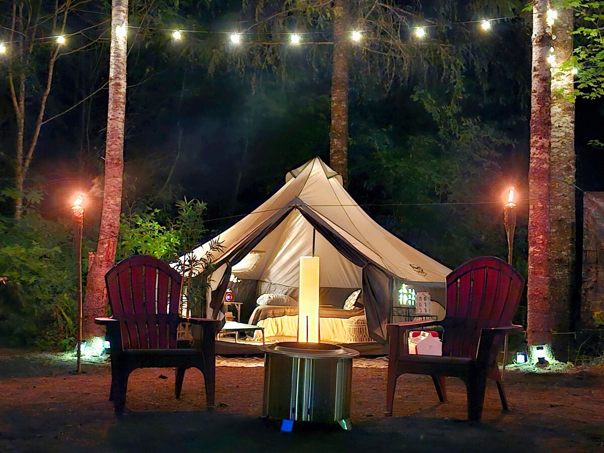 Berkemah dengan kemewahan tanpa perlu repot! 10 menit berkendara ke pintu masuk Taman Mt Rainier. Kami berada di dekat sungai Nisqually dan beberapa menit dari kota Ashford yang indah. Anda bisa menikmati pengalaman yang luar biasa di tenda glamping kami! Ruang pribadi yang terpencil di lahan seluas 26 hektar dengan pepohonan tua dan satwa liar. Tempat tidur king size mewah, kulkas mini, Keurig, dan meja nyaman untuk 2 orang dengan permainan untuk dimainkan. Dihangatkan oleh perapian propana dalam ruangan. Ada shower air panas yang menantimu setelah kamu selesai berpetualang!