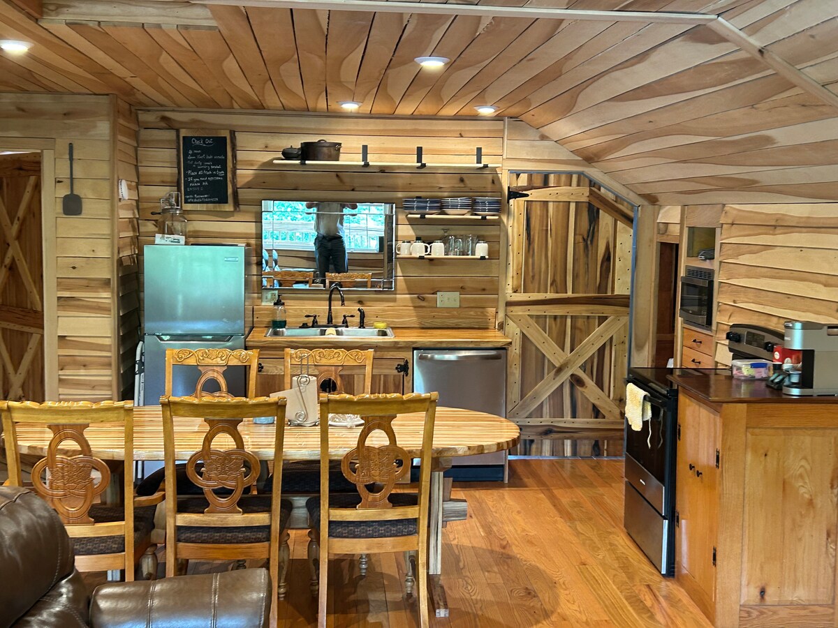 Tenang saja di tempat liburan yang unik dan tenang ini. Loteng ini terbuat dari gergaji kayu dan digiling di peternakan ini. Nikmati kayu keras Indiana saat mereka mengelilingi Anda di tempat ini. Berada di pusat kota, Anda tidak jauh dari Holiday World, Jasper, Lincoln City, Patoka Lake, dan Historic Huntingburg. Master Bedroom menawarkan tempat tidur berukuran king. Area tamu memiliki dua tempat tidur twin, TV, WiFi dan Dapur. Ruangan ini cocok untuk para lajang, pasangan, atau keluarga kecil. Sebagian besar menyukai tangga spiral dan dek besar.