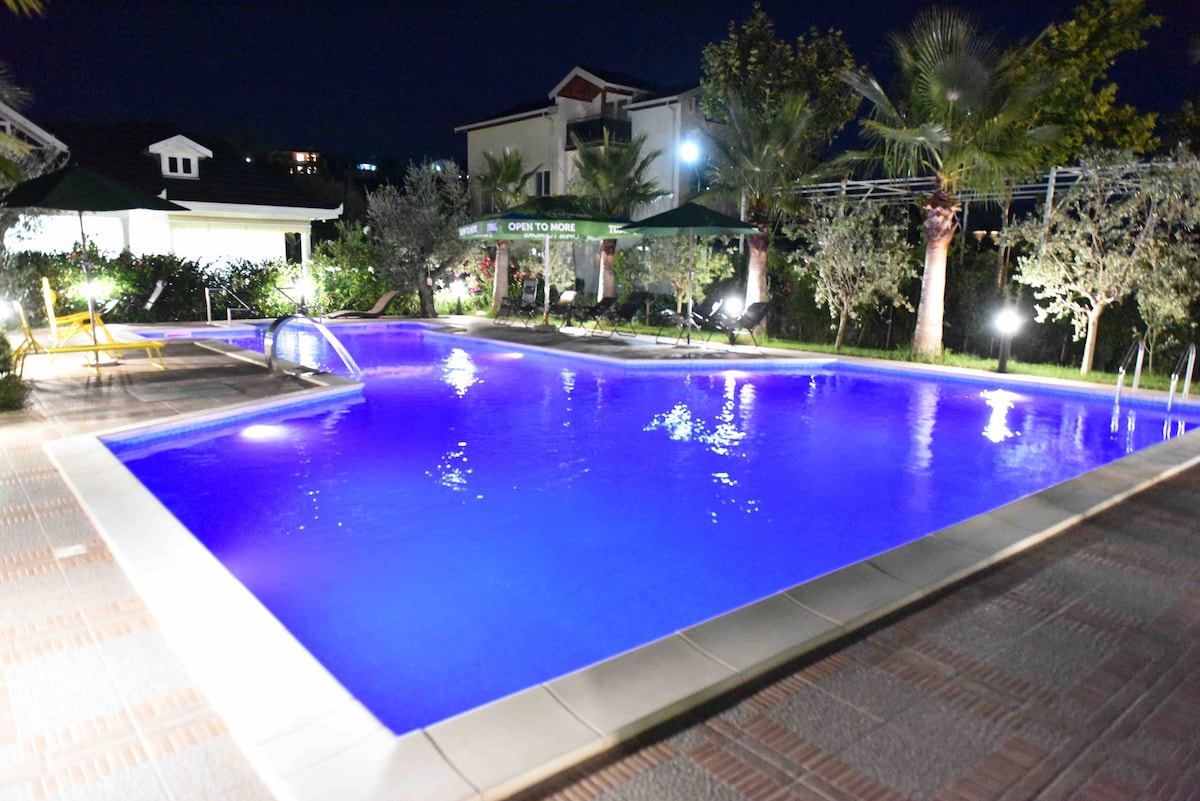 Selamat datang di Apartemen Talea Beach! Tempat peristirahatan☀️ 1 kamar tidur di lantai dasar menawarkan liburan yang damai bagi pasangan dan keluarga kecil. 🌊 Nikmati kenyamanan dapur lengkap dan taman menawan. 🏖️Nikmati akses langsung ke pantai, ditambah kolam renang yang hanya berjarak beberapa langkah untuk berenang dan bersantai. 🏊♀️ Dengan keamanan 24/7, parkir gratis, dan supermarket di lokasi, kenyamanan Anda adalah prioritas. 🛒 Dari 🏘️ ke: Bandara 📍Tirana - 30 menit 📍Tirana - 45 m 📍Prishtina - 2 jam 20 menit