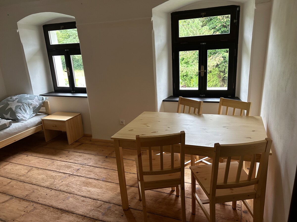 Tempat bergaya ini cocok untuk rombongan dan liburan ramah keluarga. Apartemen ini dibuat di lantai 1 gedung yang telah direnovasi, yang sejarahnya berasal dari abad ke -19, dan dapat diakses dari paviliun kayu yang telah direnovasi secara autentik. Akomodasi ini berada di lokasi Mlýn Brewery dan pengunjung dapat menggunakan layanan restoran pembuatan bir dan fasilitasnya jika berminat.
