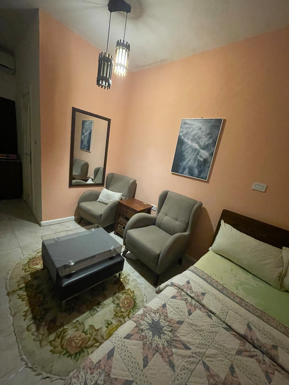Enjoy extra space and privacy in our One-Bedroom Apartment at Tris Estates Hotel & Suites. This modern unit features a separate bedroom, comfortable bed, living area, private bathroom, air conditioning, smart TV, high-speed Wi-Fi, workspace, and daily housekeeping. Guests also have access to secure parking and our exclusive rooftop lounge. Perfect for business travelers, couples, and long stays seeking comfort, security, and a peaceful boutique hotel