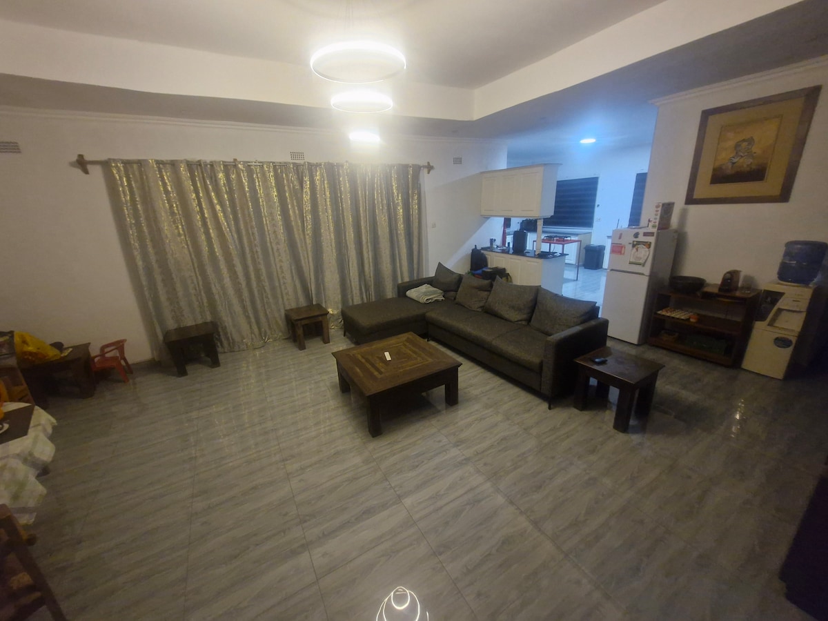 Selamat datang di Malawi! Rumah pribadi ini sangat cocok untuk wisatawan solo yang sedang berbisnis/bersenang - senang, keluarga, atau rombongan! Sewa seluruh rumah tamu 3 kamar tidur/2 kamar mandi. Terletak di Area 49, rumah ini berjarak beberapa menit dari kapal, Crossroads, dan Game Plaza. Restoran yang bagus juga berdekatan. Tepat di seberang Stadion Bingu dan Warm Heart Villa, terdapat juga TV satelit, cadangan air, shower air panas, stand by Generator, dapur full furnished dengan stand by gas cooker jika terjadi blackout, Self catering Free WIFI.