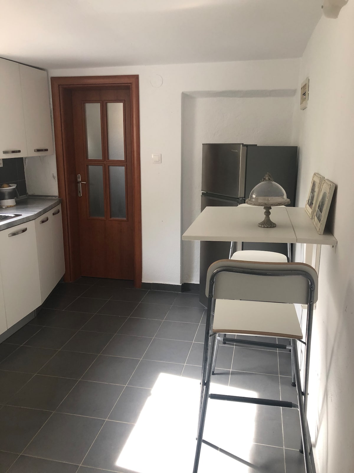Studio/apartemen yang ditawarkan berukuran 22 m², dengan ruang terbuka, memiliki satu tempat tidur double dan satu tempat tidur single, dengan dapur lengkap (4 kompor, oven, lemari dan kulkas dengan freezer ukuran standar), lemari pakaian, kamar mandi terpisah, dengan balkon pribadi dan halaman Studio/ apartment22 m² with one double and one twin size bed ,equipped with a full kitchen, (stove with 4 burners and oven, cabinets and a refrigirator with a fridge)wardrobe a seperate bathroom , smart tv,a private balcony and a yard.