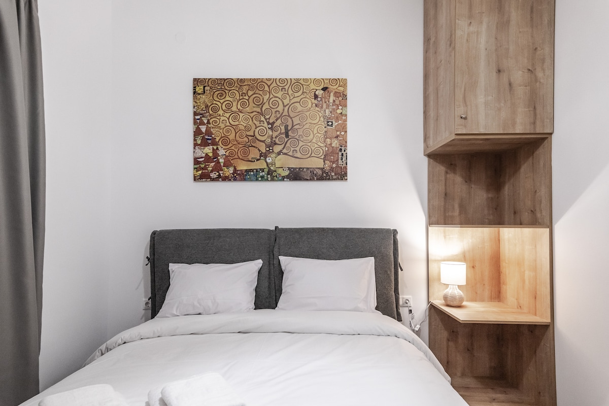Menginaplah di pusat kota Volos! Apartemen kami yang nyaman terletak di jalan perbelanjaan utama kota, hanya dua blok dari laut. Kafe, restoran, dan toko semuanya bisa ditempuh dengan berjalan kaki, menjadikannya basis yang sempurna untuk menjelajahi pusat yang semarak, menikmati jalan - jalan di tepi pantai, atau melakukan perjalanan ke Pelion. Sangat cocok untuk pasangan, wisatawan solo, atau tamu bisnis yang mencari kenyamanan dan kemudahan di tempat paling sentral di kota.