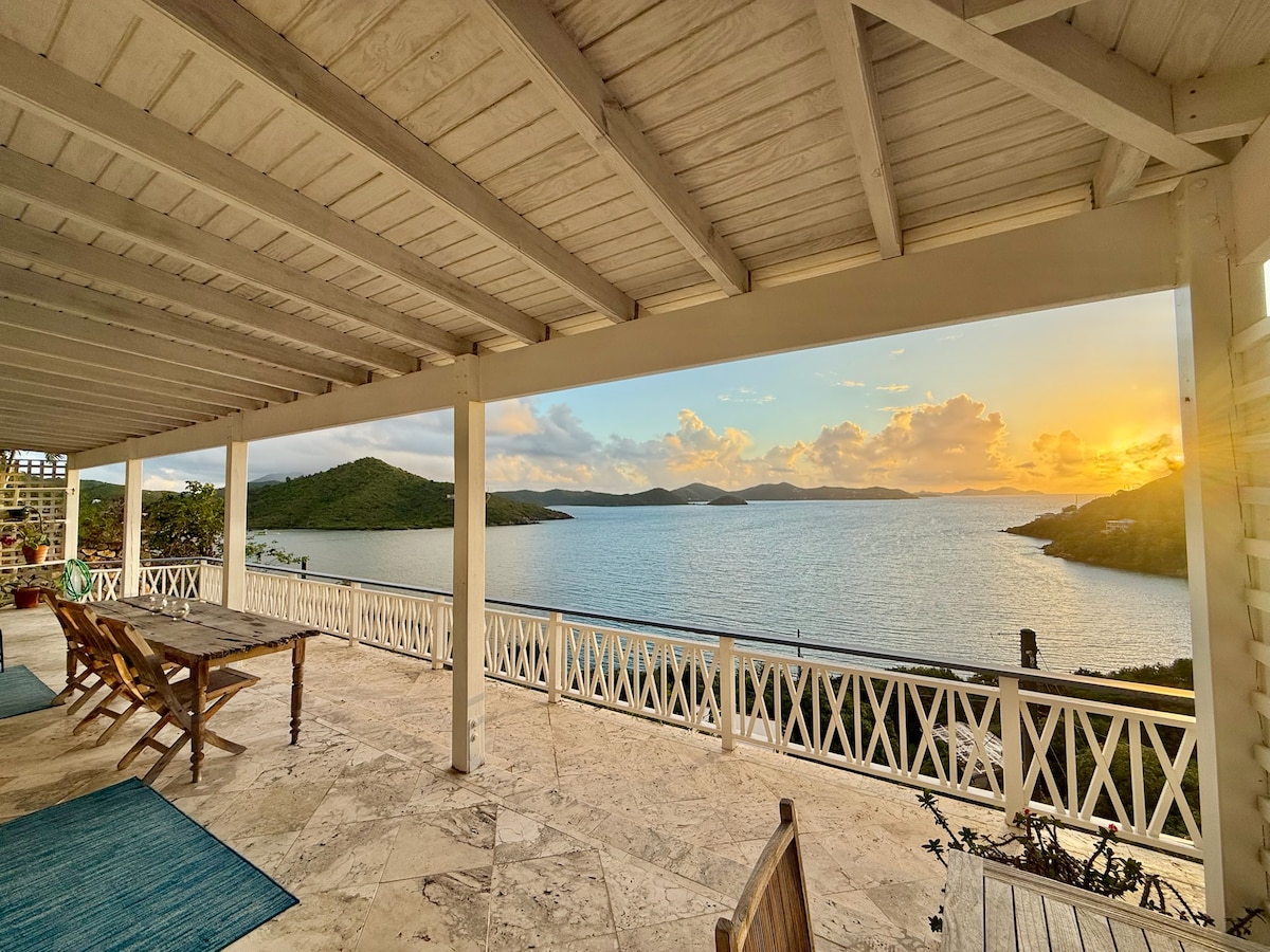 Pemandangan Biru adalah konstruksi baru! Arsitektur Karibia modern yang klasik dan lembut di atas lahan seluas satu hektar dengan pemandangan indah dari matahari terbit di atas semenanjung Ram Head hingga matahari terbenam di atas St. Thomas. Ini adalah properti yang sangat istimewa yang terletak dengan sangat hati - hati untuk menangkap angin Leeward dengan pemandangan St. Croix yang tidak terhalang sejauh 40 mil. Temukan sinar matahari atau naungan sempurna yang Anda inginkan kapan saja di siang hari. Blue View adalah vila terpisah yang terletak berdekatan dengan Vila utama kami dan 6 menit ke Cruz Bay