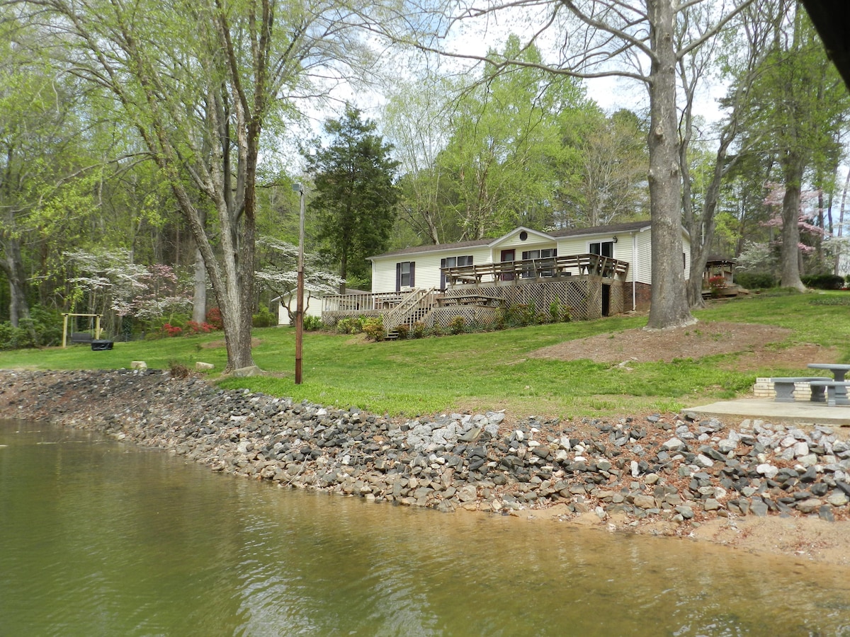 House of Blue adalah pondok di properti kami yang menawarkan dua kamar tidur queen & 1,5 kamar mandi. Area luar ruangan dilengkapi tempat duduk teras depan, tempat duduk dek belakang, lubang api, meja piknik, pemanggang opsional & banyak pencahayaan di malam hari. Harap perhatikan: Ada tangga untuk memasuki rumah dan mungkin ada suara bising dari kendaraan yang lewat. Rumah kami nyaman untuk menggabungkan Akademi, rumah sakit, dapat dikendarai ke pusat kota & banyak tempat pernikahan seperti Crowe Mansion. Jaraknya satu mil ke Hwy 321, 20 menit ke I-85 & 20 menit ke I-40.