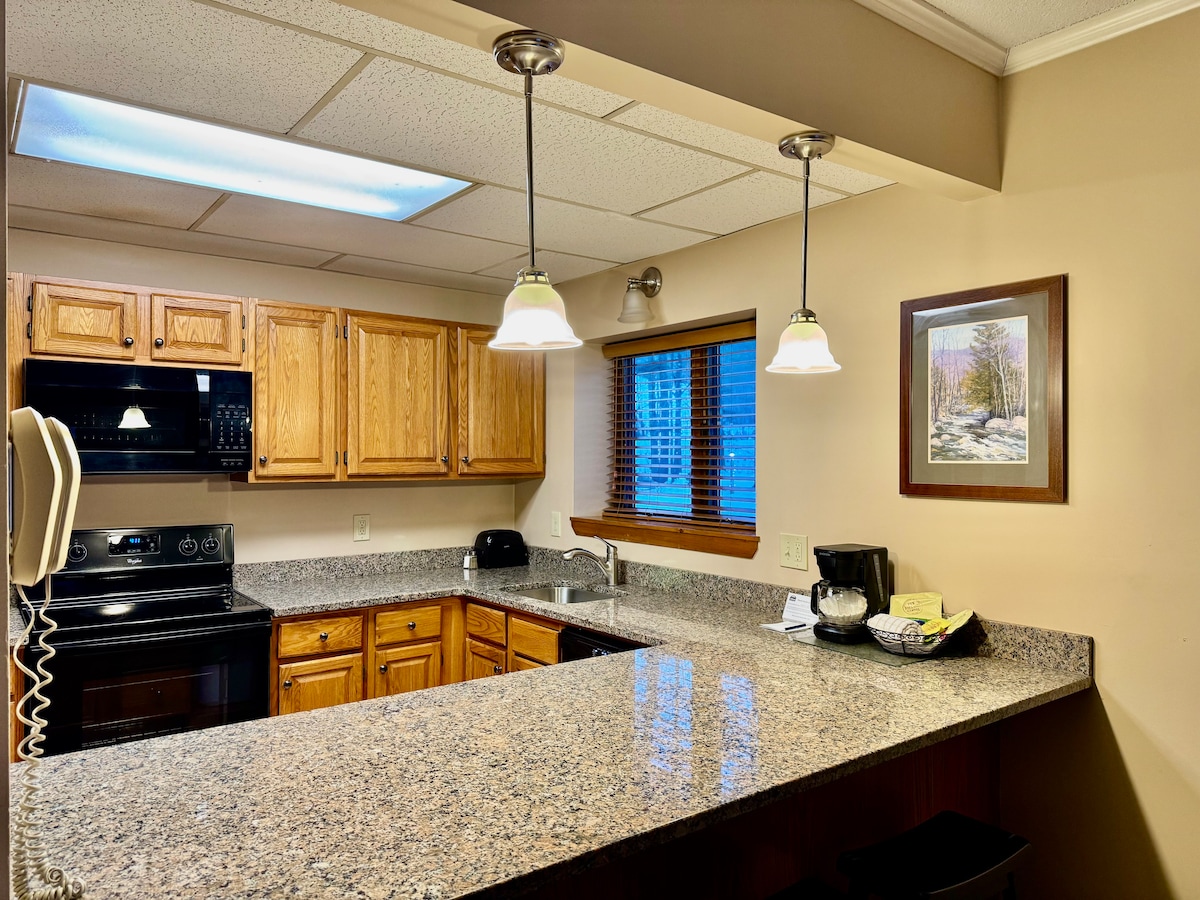 KimBills 'adalah kondominium lantai satu yang baru direnovasi dan nyaman yang terletak di Attitash Mtn. Desa, hanya berjarak beberapa menit dari Sungai Saco. Dapur lengkap yang dilengkapi dengan kebutuhan, perapian gas, AC, tempat tidur Murphy, dan tempat tidur sofa pull - out dengan kasur baru yang nyaman. Kabel/internet, TV 55", & permainan papan. Dek besar dengan pencahayaan. Tamu menikmati penggunaan penuh dari semua Attitash Mtn. Fasilitas desa termasuk akses sungai, kolam renang, sauna, bak mandi air panas, tenis & bola basket. Dekat dengan tempat belanja dan area wisata.