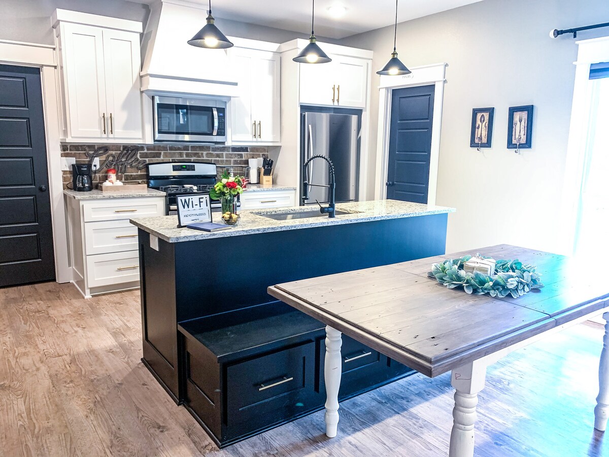 Boat and Jet ski rental! The Island Oasis is surrounded by panoramic water views on 3/4 of an acre on the “Island” in a gated community. The 365 acre lake has excellent fishing, kayaking, boating + swimming! Maui Mat, 2 kayaks + 2 SUP are available for your adventure with Life jackets. You will love the massive gourmet chef's kitchen for family meals! This home boasts 2400 Sqft and 3 bedrooms & 3 bathrooms making it easy to accommodate up to 12 guests. Loft bedroom stairs steep. Pet friendly!