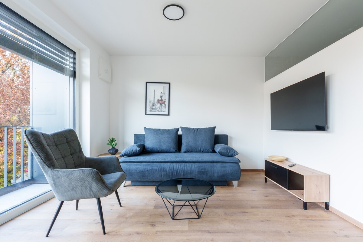 Modern and stylish apartment just 3 stops from the city center. Enjoy a private balcony, a fully equipped kitchen with capsule coffee machine, 50" TV, fast WiFi and a comfortable home office area. Free parking is available in the private garage. Located in a quiet area with excellent tram connections: only 2 stops to the main train station and close to cafés, restaurants and shops. Perfect for business travelers, couples and city explorers.
