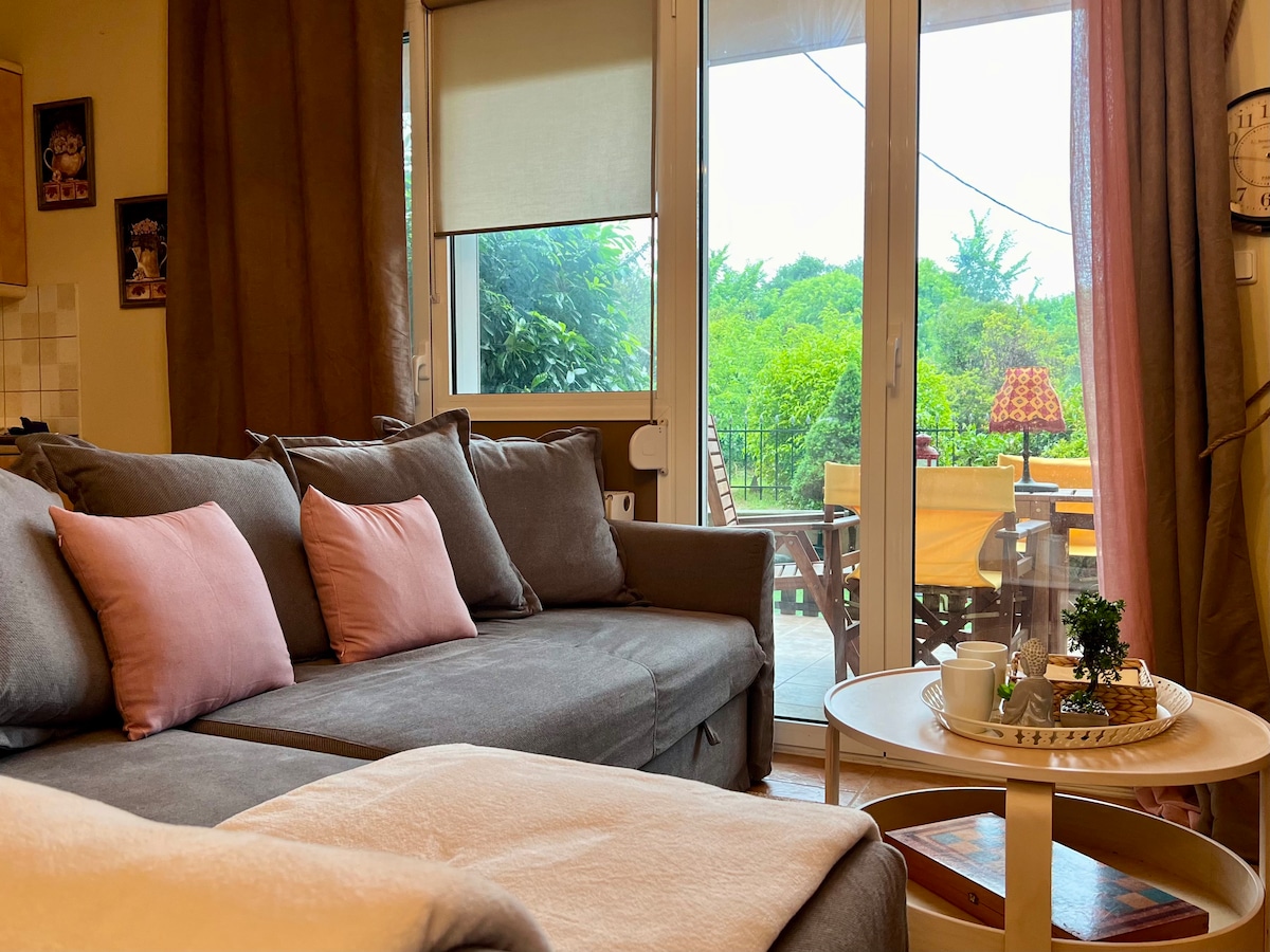 Relax and reconnect with nature. You are 5 minutes away with car from the magnificent beaches of Plaka, Litoxoro and at the same time you have access to the highest mountain of Greece. Mount Olympos the mountain of the Greek God's. Visit our apartment and our town and get some of that magical vibe and essence of the ancient world.