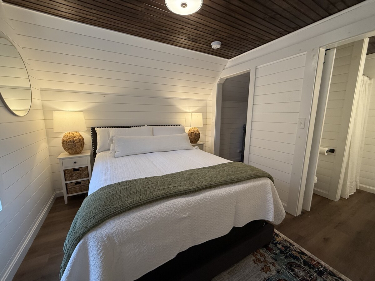 Rumah kayu pribadi yang baru direnovasi ini terletak tepat di samping tepi laut. Lantai berseri - seri dengan semua peralatan rumah tangga baru dan meja granit. Pancuran spa di kedua kamar mandi. Satu kamar tidur besar dengan tempat tidur king dan dua tempat tidur futon mewah Queen untuk tamu. Perapian batu. Mesin cuci dan pengering baru. Pemanggang arang di luar dan meja piknik dengan pemandangan laut. Ramah Hewan Peliharaan tersedia tempat tidur hewan peliharaan dan peti