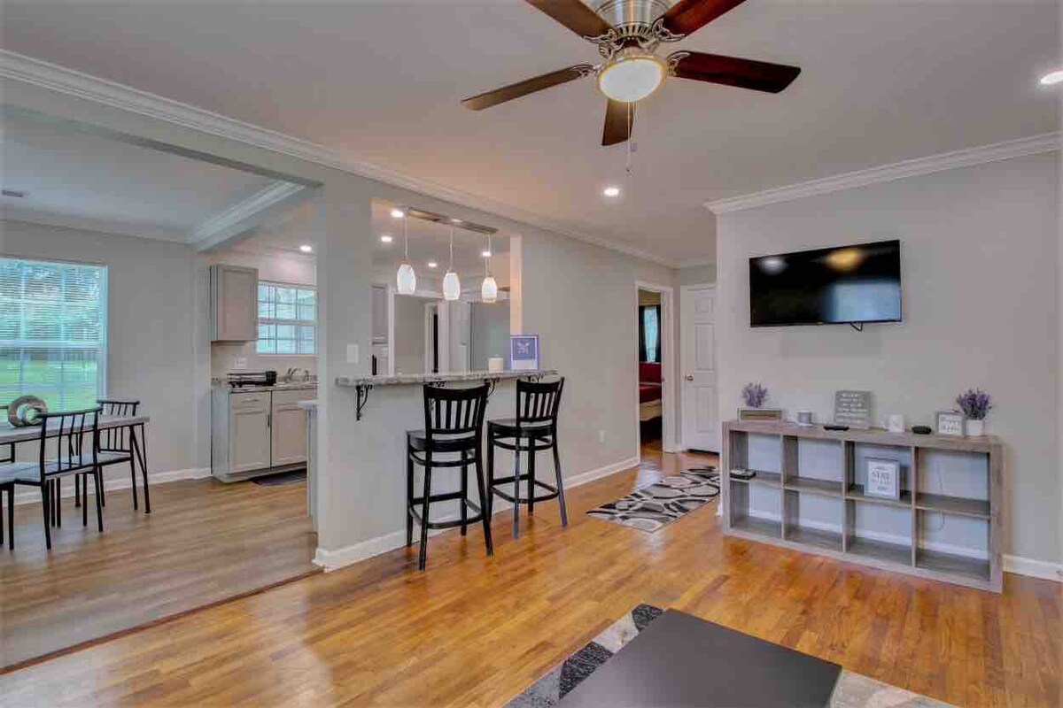 Rumah tamu cantik yang terletak 3 blok di sebelah barat State Capitol, memiliki 2 kamar tidur dan 1 kamar mandi di denah terbuka, fasilitas termasuk, meja granit di dapur, lemari desain khusus, ubin keramik di kamar mandi, ruang tamu dan dapur, perapian listrik, dan tv di atas, mantel di cerobong asap, masing - masing 2 kamar tidur memiliki tempat tidur berukuran king, Anda bisa bersantai mendengarkan air terjun. BARU, kami memiliki konektor dinding universal EV Level 2 untuk digunakan!