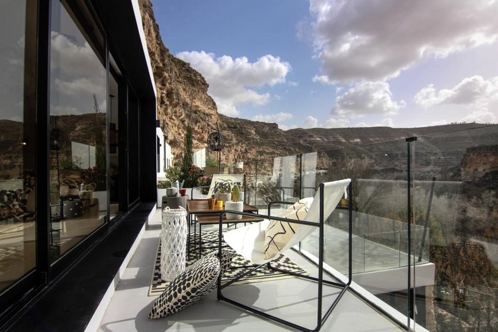 KAHF adalah gua berusia berabad-abad, yang direnovasi sepenuhnya pada tahun 2023. Terdiri dari 60 m2, dibagi menjadi dua lantai, lantai pertama, dengan ruang tamu avant-garde yang luas di mana ia bergabung dengan dapur desain terbuka dan lengkap. Di lantai dua terdapat kamar tidur dengan tempat tidur KING SIZE, dengan teras pribadi dan pemandangan Hoz del Río Júcar. Suite ini menampilkan Jacuzzi pribadi yang spektakuler, terletak di massa batu yang merangkul seluruh vila.