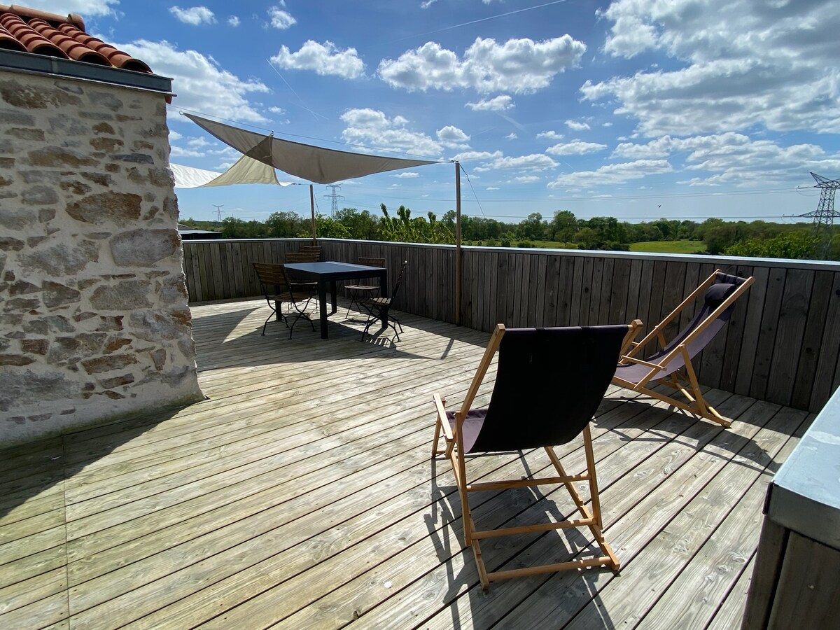 Datang dan menginaplah selama akhir pekan, satu minggu atau lebih di wilayah Pays de Loire, di properti atipikal yang direnovasi dengan penuh semangat. Old mill yang berasal dari tahun 1833, direnovasi pada tahun 2018 menawarkan ruang tamu dengan sofa bed, 3 kamar tidur dengan pemandangan menakjubkan, kamar mandi, kamar mandi, toilet, ruang tamu/dapur, teras. Seprai dan handuk opsional berbayar. Pembersihan harus dilakukan pada saat check - out jika tidak, Anda bisa meminta layanan berbayar. Akomodasi yang bisa menampung 6 -8 orang.