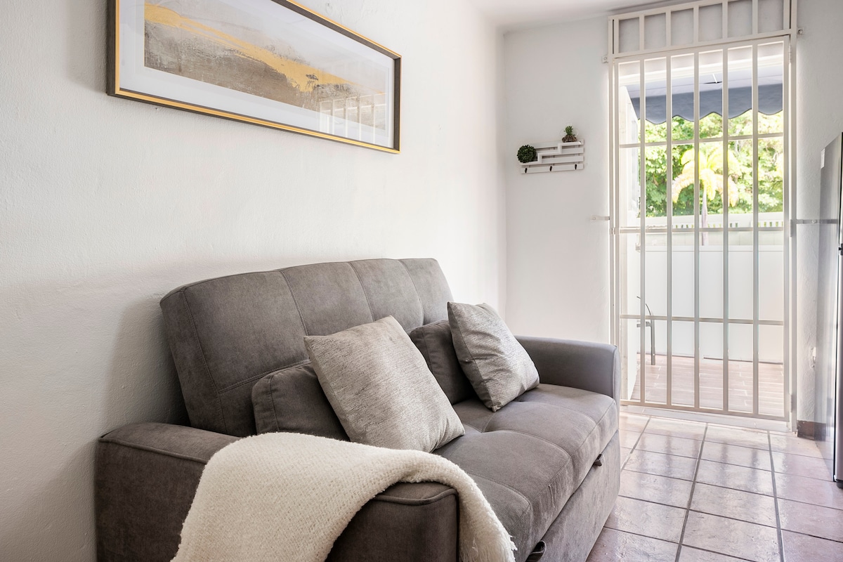 Nikmati ketenangan apartemen nyaman ini di area Carolina, dengan lokasi yang sangat baik 8 menit dari Bandara, 13 menit dari C. Loiza, County , Placita de Santurce, 16 menit dari PR Coliseum, Distrik T - Mobile, El Viejo SJ, Plaza las Americas , Mall of SJ dan pantai lokal. Tempat ini memiliki 1 kamar mandi , 1 Tempat Tidur dengan tempat tidur Queen, Sofa , meja kerja. Termasuk: Wifi, Smart TV , Kulkas, Kompor, Microwave, Pembuat Kopi, Pembuat Kopi, Peralatan Dapur, Peralatan Dapur, AC , Di antara hal - hal lainnya!