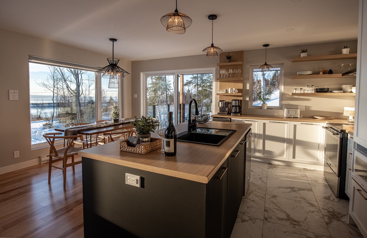 Chalet Skandinavia kecil untuk dua orang yang berlokasi ideal untuk menikmati atraksi Charlevoix. Tempat ini memiliki sirkuit termal (bak mandi air panas, sauna, hammam) Sangat intim dan berada di tengah hutan, pemandangan menghadap sungai megah dan pegunungan di kejauhan. Semua peralatan modern ada di sana dan kenyamanannya adalah AC dan perapian luar ruangan. Desain konsep terbuka dirancang untuk pengalaman mendalam di alam: jendela besar, pancuran panorama. Akses melalui jalan pribadi di 500 m.