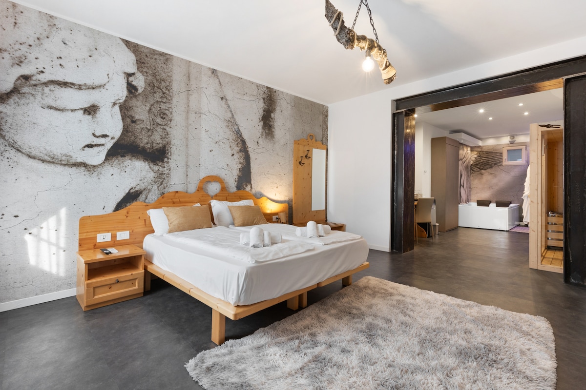 Pelukan pepohonan hijau yang subur dari pakis akan memberikan perlindungan dan ketenangan seperti di hutan kuno. The FERN Suite is a tribute to elegance and refined design, designed for an exclusive stay on Lake Garda. Bahan halus, perabotan halus, dan lampu lembut menciptakan suasana yang canggih, mampu menggabungkan kenyamanan dan gaya. Cocok untuk pasangan, perjalanan bisnis, atau keluarga, tempat ini adalah tempat peristirahatan mewah di mana relaksasi dan kesejahteraan menyatu menjadi pengalaman yang tak terlupakan.