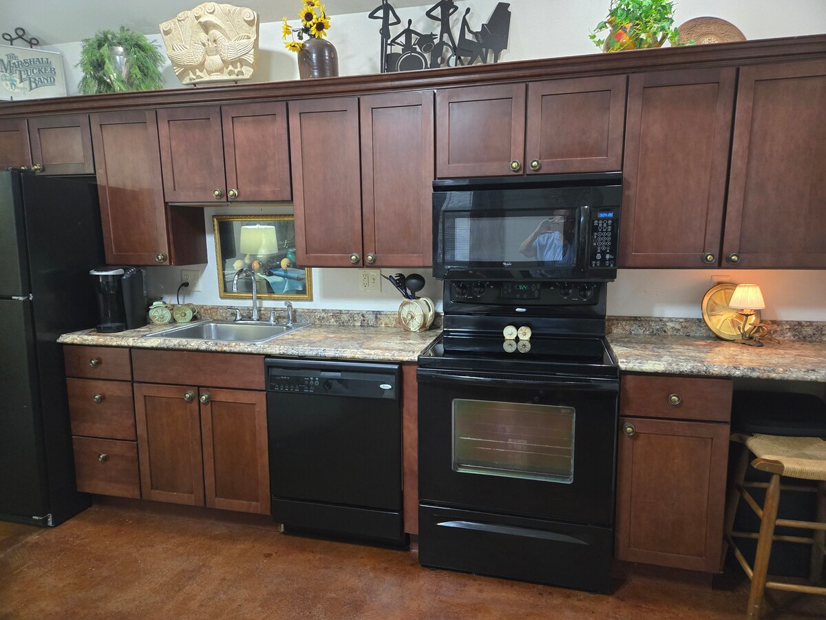 Bungalo studio yang manis ini nyaman, damai , dan tenang. Patio ini sangat santai di mana Anda bisa menikmati kopi Anda. Tempat persembunyian yang manis di tengah kota tidak jauh dari jalan bebas hambatan. Tempat ini dapat menampung 2 orang dewasa di tempat tidur queen dan 1 orang dewasa atau 2 anak di sofa tidur ukuran penuh. Dapur kecil memiliki kulkas di bawah meja. Microwave, pemanggang roti, wajan listrik, dan Keurig juga disediakan.