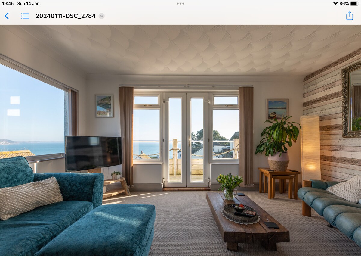 Apartemen nyaman dengan pemandangan pantai di bukit West Looe.