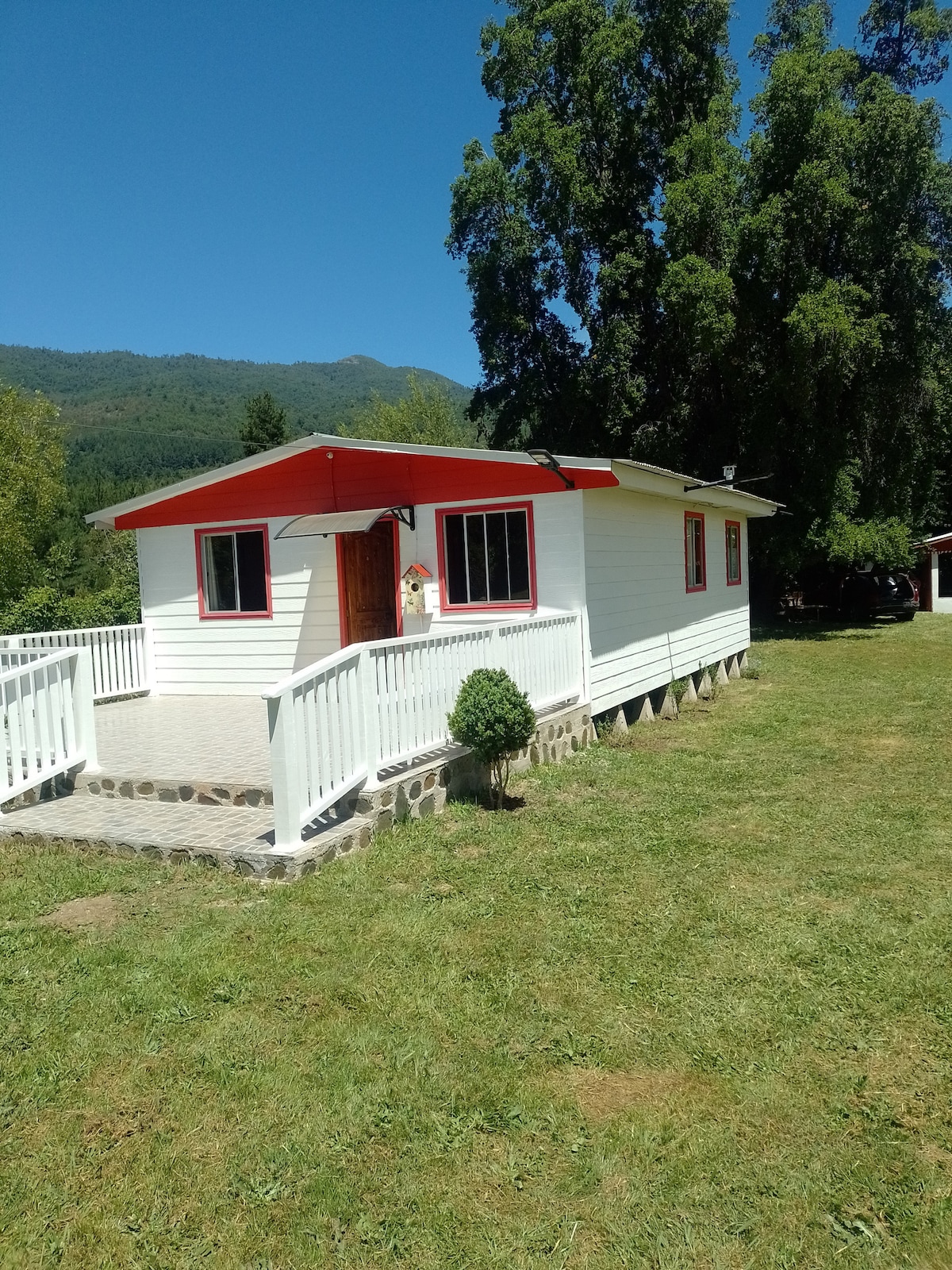 Disfruta de una linda vista entre montañas y rios, cervecería y pizzeria a proximidad! El lugar ideal para relajarse en un lugar tranquilo, natural y alejado. El Parque Tricahue está a 1 km para caminar, conocer pozones, cascadas... Alrededor de la cabaña, disfruta de los arboles, muro de escalada, cancha de volleyball, parrillas, zona de fogatas y mesa de ping-pong. Libros, caña de pescar, juegos y instrumentos a su disposición en recepción. Posibilidad de encargar un desayuno por $5.000 pp.