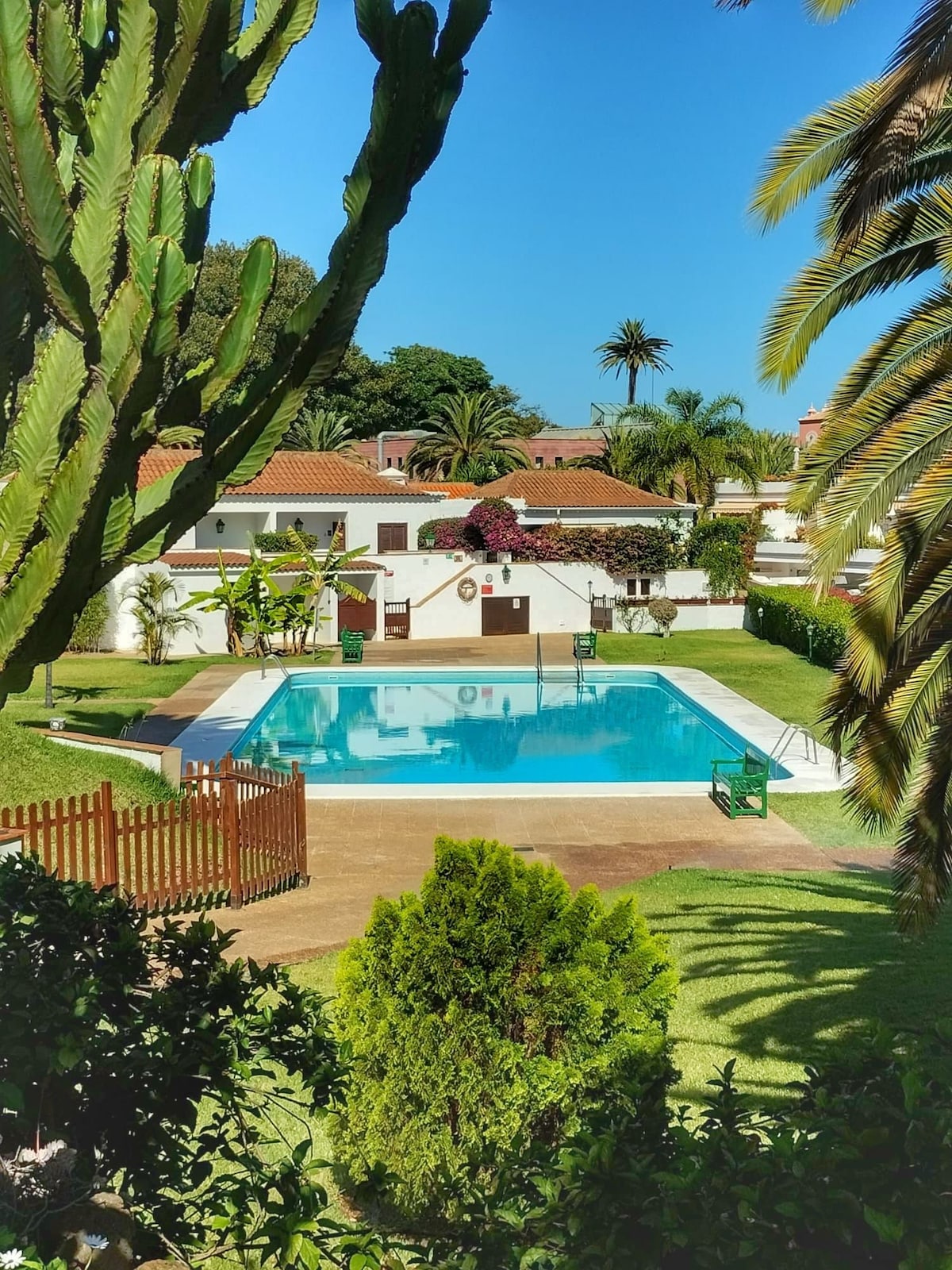 Enjoy your break in our stylish oasis in La Paz, Puerto de la Cruz. Modern apartment with private garden, heated pool and breathtaking views of Mount Teide. Fully equipped kitchen, cosy living room, WiFi and Netflix & Disney+ on request. Quiet location right next to the botanical gardens – perfect for relaxing, exploring and soaking up the sun.