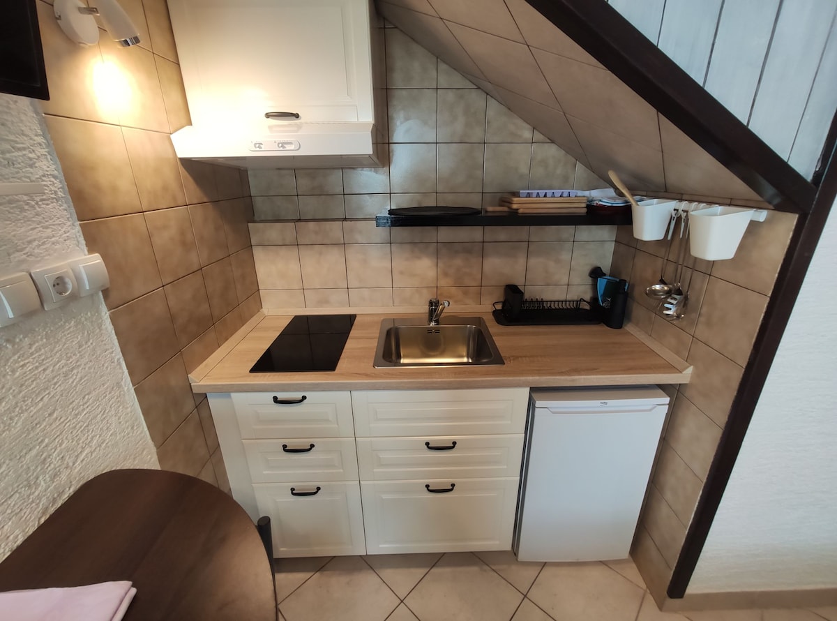 Toš ap terletak di lantai tengah rumah tradisional yang telah direnovasi, terletak di pusat desa pesisir, dilengkapi dengan tradisi. Tempat ini bukan yang paling terang, namun menawarkan kenyamanan di musim panas. Ap. terdiri dari ruang tamu dengan dapur, kamar tidur dan kamar mandi dan cocok untuk keluarga. Tamu memiliki akses ke taman pribadi yang indah, terletak hanya 40 m dari rumah (akses dengan tangga). Pantai lokal hanya beberapa langkah dari taman. Parkir, terjamin, E - charger