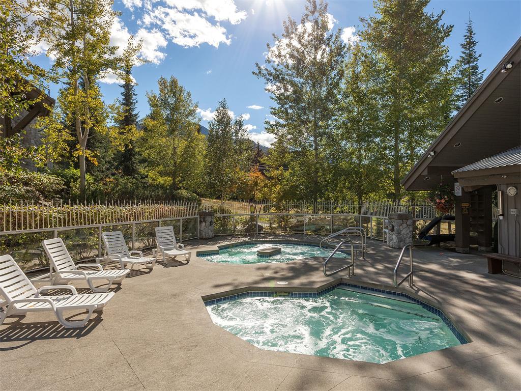 Modern, cerah, bersih dan nyaman. Terletak tepat di atas semua fasilitas di Marketplace Pavillion di Main St. Naik lift dari semua toko, bahan makanan, lift kursi, dan desa utama. Gedung ini memiliki parkir bawah tanah berpemanas gratis, bak mandi air panas di atap bersama di gedung yang aman. Mesin cuci/pengering di dalam suite, perapian, dan dapur lengkap. Kamar mandi memiliki bak mandi/pancuran. Suite ini bersifat pribadi dan terletak di lantai 3 dengan balkon yang bagus dan pemandangan yang indah.
