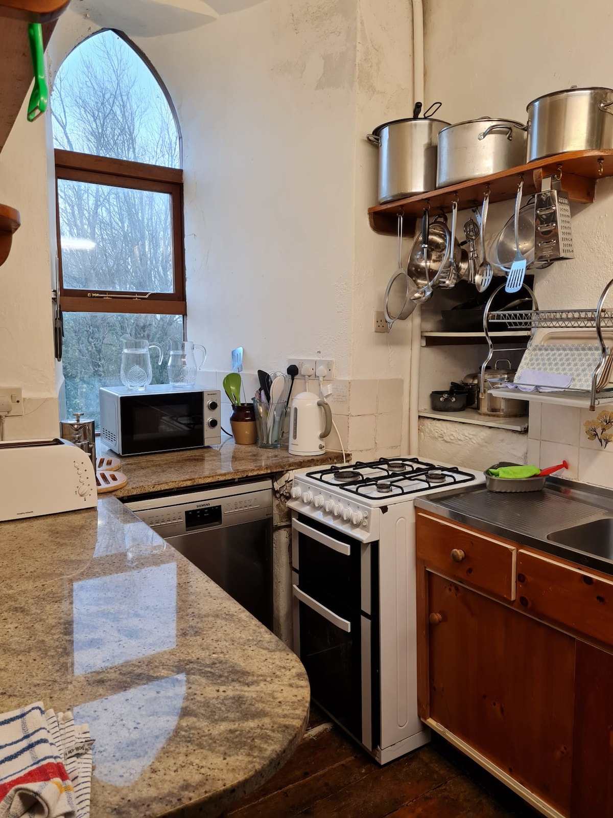 Tempat yang berkesan ini sama sekali tidak biasa. Mandiri dan luas, menampilkan satu kamar tidur besar dan juga tempat tidur yang dapat dilampirkan ke kamar pribadi dengan pintu lipat. 2 sofa juga dilipat menjadi tempat tidur. Penggunaan patio dan tempat parkir yang luas, termasuk TV cerdas, internet, laundry, dan fasilitas dapur lengkap. Jarak berjalan kaki ke desa, namun terselip di lingkungan pedesaan. Dekat dengan pantai Lough Corrib , Oughterard Golf Club dan banyak jalan - jalan berpemandangan indah.