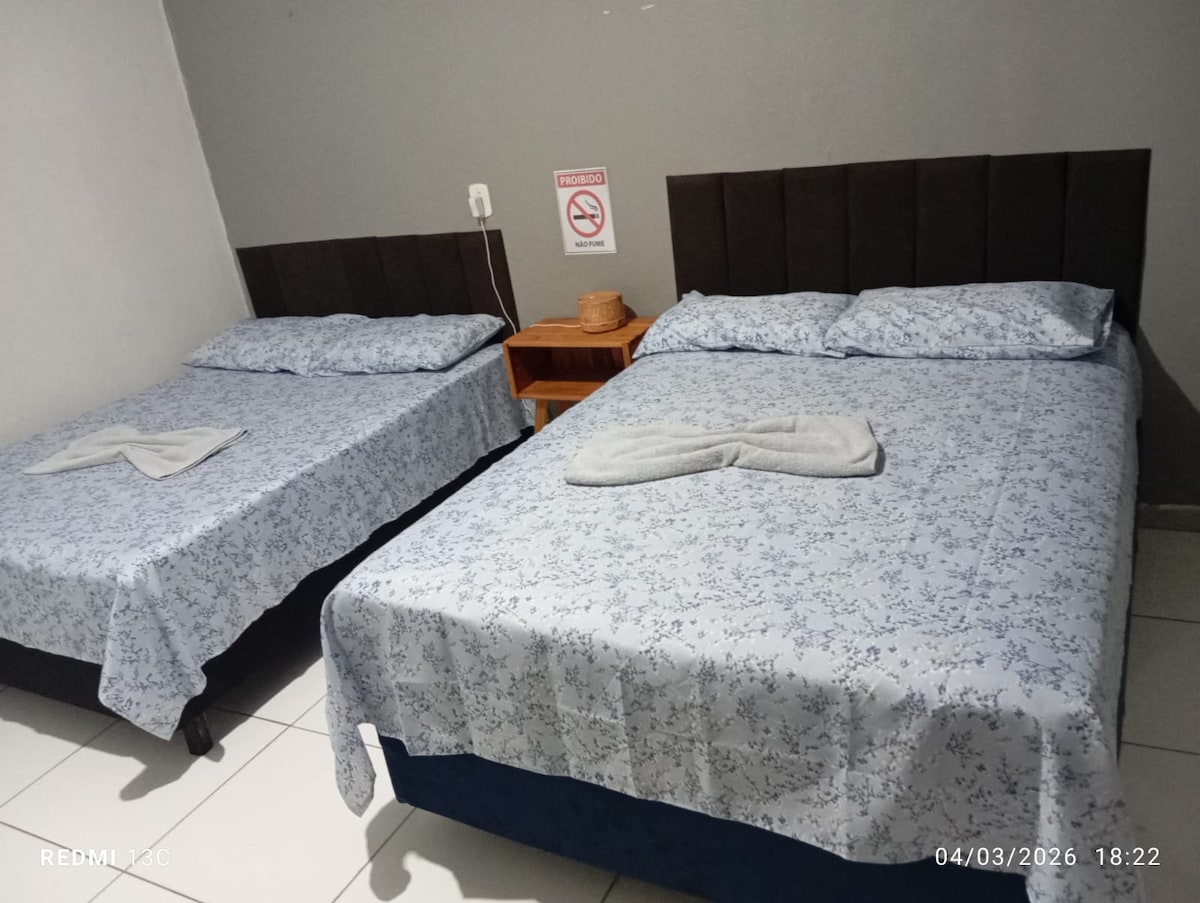 Lupakan kekhawatiran Anda di tempat yang tenang dan luas ini. Rumah Anda seperti di rumah sendiri! Temukan rumah kami yang indah di lokasi yang luar biasa, ideal untuk keluarga, pasangan, atau wisatawan solo. Yang kami tawarkan: - 2 Kamar Tidur Nyaman - Ruang tamu yang nyaman dengan TV -ozinha equipada - Banheiro Modern Wi - Fi dan AC gratis - Selain kenyamanan internal, ada ruang tertutup dan aman untuk hingga 3 mobil.