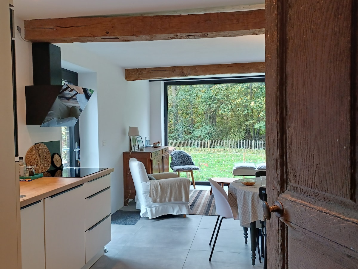 Studio modern, cerah dan nyaman yang indah di lantai 1 lumbung yang direnovasi sepenuhnya. Tenang, jantung Ardenne Center, 100 m dari toko makanan, 200 m dari pusat perbelanjaan. Cocok untuk pasangan. Dapur lengkap, kamar mandi terpisah dengan pancuran dan toilet. Teras besar seluas 25 m2 dengan meja 2 pers. dan furnitur taman (musim panas). Mesin cuci yang sama dengan studio lain. Tempat tidur double 160 + tempat tidur sofa (1 orang dewasa atau 2 anak) di kamar yang sama.