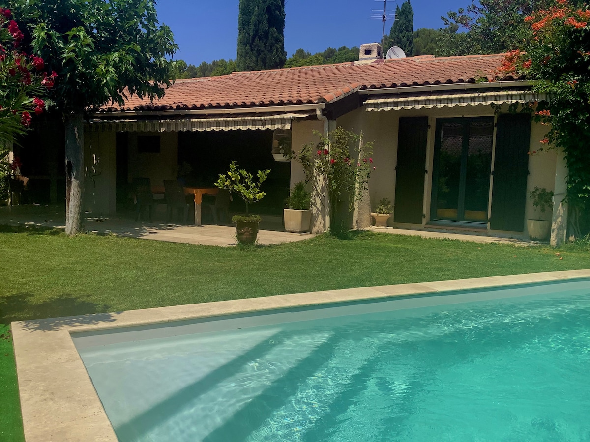 Mungkin untuk 4 orang atas permintaan. Studio ber - AC, depan kolam renang yang akan digunakan bersama. Terletak di pedesaan, di ujung jalur 500m. Lebih baik diangkut. 2 menit naik mobil dari pertokoan, restoran, jalan raya, 7 menit dari pusat kota atau ZI (mil) dan 30 menit dari pantai dan Marseille. Anda akan menyukainya di area luar ruangan. Sangat cocok untuk pasangan, wisatawan tunggal, pelawat bisnis (dengan anak)