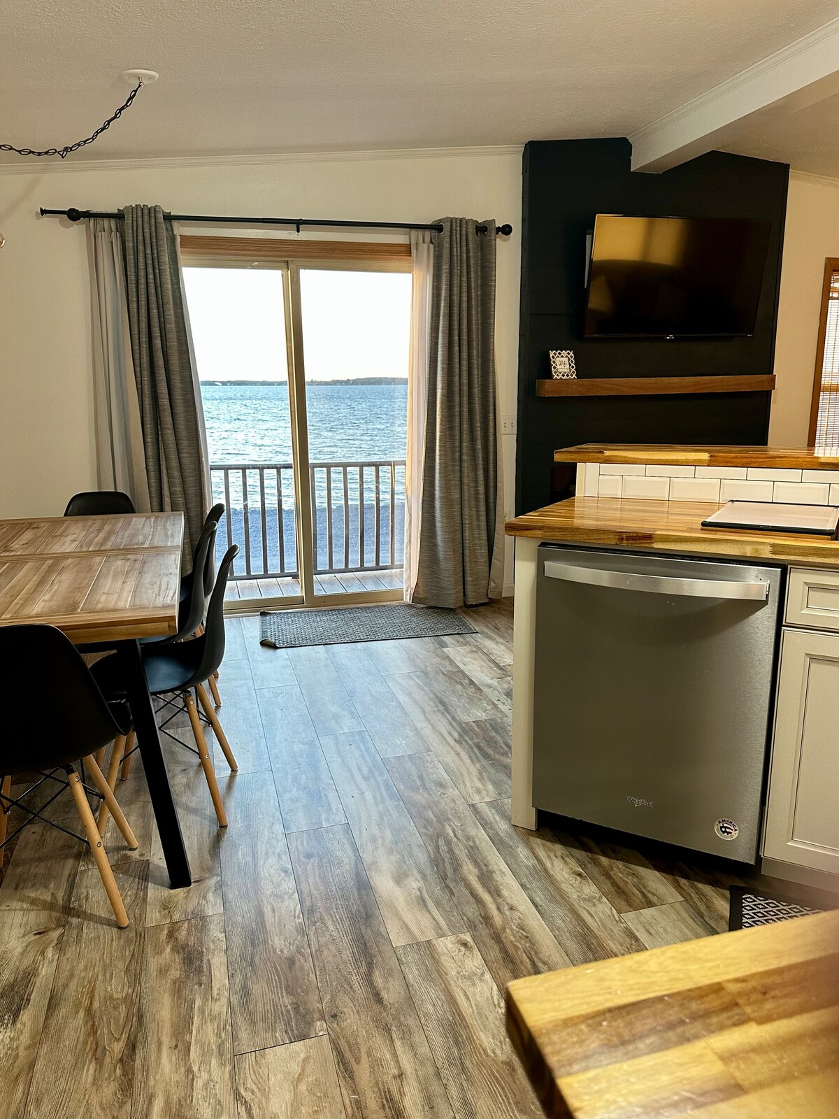 Take a break and unwind at this peaceful oasis. Newly renovated waterfront cottage on Chaumont Bay with breathtaking sunset views of Lake Ontario. Eventide View sleeps up to 8 with 3 bedrooms and 1.5 baths. Swim, fish, kayak, relax waterside, or snuggle up inside with a book and a blanket next to the fireplace. The large backyard offers plenty of room to play. Guests will also have access to the 1 stall garage. Our waterfront rocky beach has great swimming for kids of all ages.