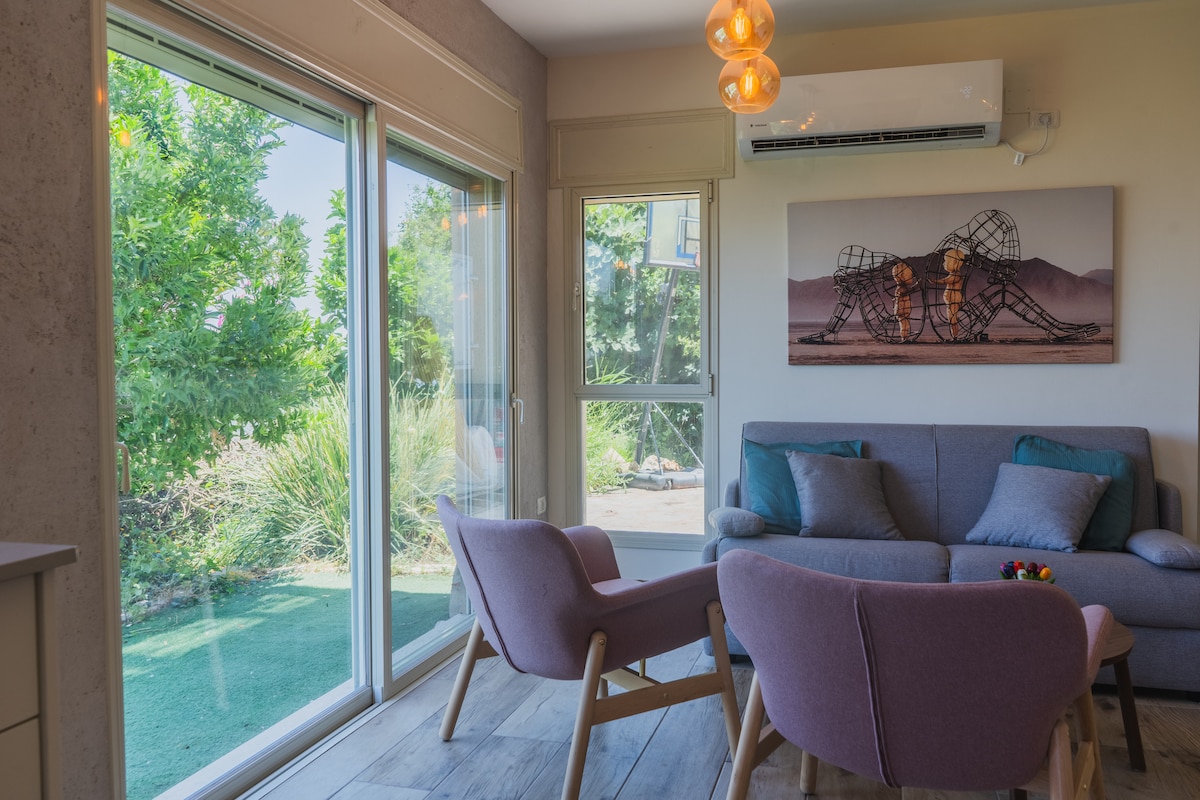Kabin tamu yang indah dan luas untuk pasangan di komunitas Goethe di Galilea. Dengan pemandangan laut dan tebing, dibatasi oleh wadi ajaib dan dikelilingi oleh alam hijau di sekitarnya. Kabin ini memiliki ruang yang cerah dan terdekorasi. Tempat tidur ganda besar dan mewah, dapur lengkap, pancuran unik, dan area tempat duduk yang menghadap wadi dari mana Anda bisa pergi ke alam untuk hiking. Di halaman, bak mandi air panas mewah menghadap pemandangan. Di musimโจ panas, Anda bisa menurunkan suhu. ๐ฆ Kabin ini dibangun dengan penuh kasih sayang sambil memperhatikan detail kecil untuk membuat tempat yang akan memberikan pengalaman yang sempurna๐ค