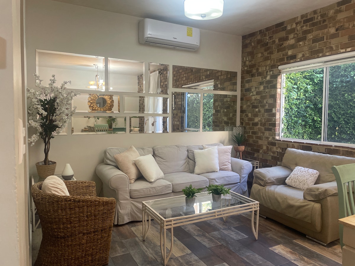 Apartemen nyaman yang baru direnovasi di salah satu lingkungan tinggal terbaik di Monterrey, dekat Calzada del Valle dan pusat perbelanjaan utama. Kamar tidur yang tenang dengan meja, minibar, dan microwave. Nikmati taman dengan barbekyu. Wifi dan pintu masuk pribadi. Satu - satunya ruang bersama adalah koridor eksterior ke suite Anda, memastikan privasi. Harap perhatikan bahwa tidak ada tempat parkir pribadi, namun tempat parkir umum tersedia di taman terdekat. Kami siap memastikan Anda mendapatkan pengalaman yang berkesan di kota kami. Selamat datang!