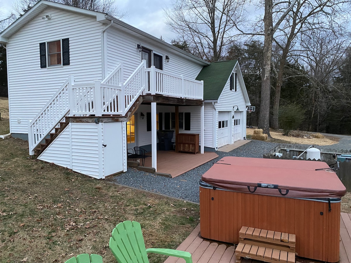 Duduk di lahan pribadi seluas 35 hektar untuk dijelajahi, sewa tempat berlibur di pedesaan klasik ini sangat cocok untuk liburan santai di luar ruangan! Anda dapat membayangkan diri Anda menikmati segelas anggur setelah seharian menjelajahi keindahan alam Virginia dari rumah di lereng bukit yang terletak di sini, berkendara pribadi yang panjang, dan dek berperabot yang luas. Oasis luar ruangan 2 tempat tidur dan 2,5 kamar mandi ini pasti akan membuat semua orang beristirahat, di luar dan menikmati hidup di saat itu.
