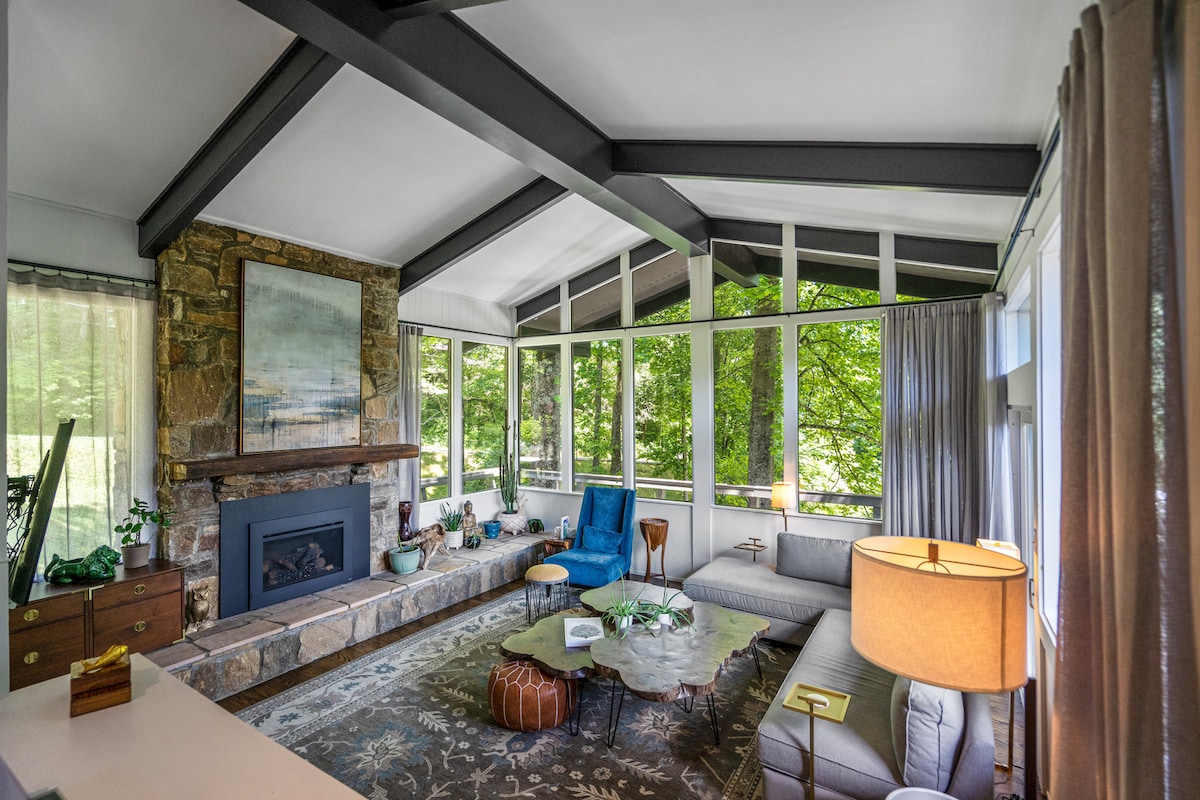 Pertengahan abad bertemu dengan tempat persembunyian gunung. Pemandangan panorama gunung & lapangan golf memberi rumah yang indah ini nuansa mewah. Rumah ini berjarak satu mil dari Maggie Valley Country Club (golf dan restoran terbuka untuk umum), aliran trout & jalur pendakian. Apakah Anda penggemar luar ruangan yang ingin bermain ski di Cataloochee, lakukan perjalanan sehari ke Asheville untuk menikmati pabrik bir, Cherokee untuk mengunjungi Kasino atau berkendara di Blue Ridge Parkway, ini adalah liburan terbaik. 6 tempat tidur dengan dek luar ruangan seluas lebih dari 1500 kaki persegi!