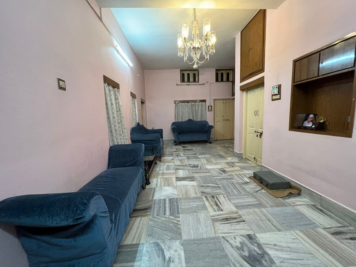 Rumah ini terletak di tengah kota dan terhubung dengan baik ke semua tempat 1. 800 mtr dari stasiun kereta Malkajgiri 2. 4,5 km dari Stasiun Kereta Api Secunderabad 3. 2 km dari stasiun metro Mettuguda 4. 100 mtr dari persimpangan Hanumanpet Kami juga menyediakan sepeda motor (Pulsar) untuk disewa harian. Tempat. Kamar penthouse yang nyaman dengan TV, AC, dan kamar mandi yang terhubung. Anda akan memiliki akses ke teras. Bersantai bersama seluruh keluarga di tempat yang damai ini. Catatan - Tidak tersedia untuk pasangan yang belum menikah dan tidak mengizinkan pesta.