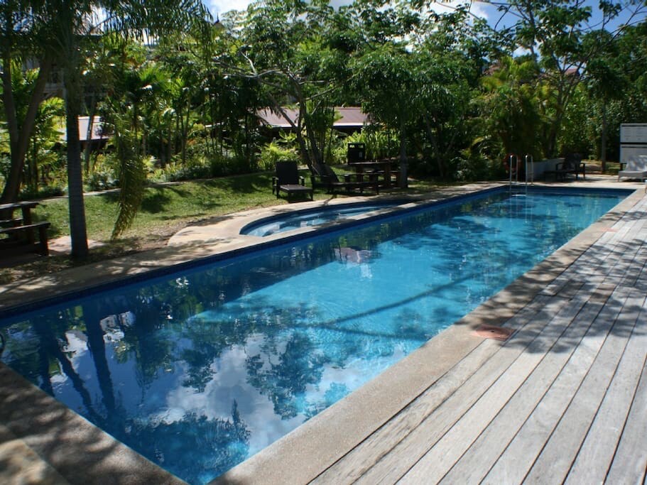 Disertifikasi oleh Departemen Kesehatan + Pariwisata untuk disewakan Terletak ideal di Pulau Eden di area dewasa yang tenang - Lantai 1 - sehingga apartemen ini aman untuk anak-anak tanpa akses ke perairan terbuka - pemandangan teluk - dapur terbuka yang luas + area tamu terbuka ke balkon yang bagus untuk bersantap di luar ruangan - Kamar tidur utama dengan tempat tidur berukuran king, kamar mandi pribadi + shower dalam dengan pintu yang mengarah ke balkon utama - Kamar tidur ke-2 memiliki tempat tidur twin, shower, toilet, + beranda pribadi AC lengkap - penggunaan gratis Golf Buggy