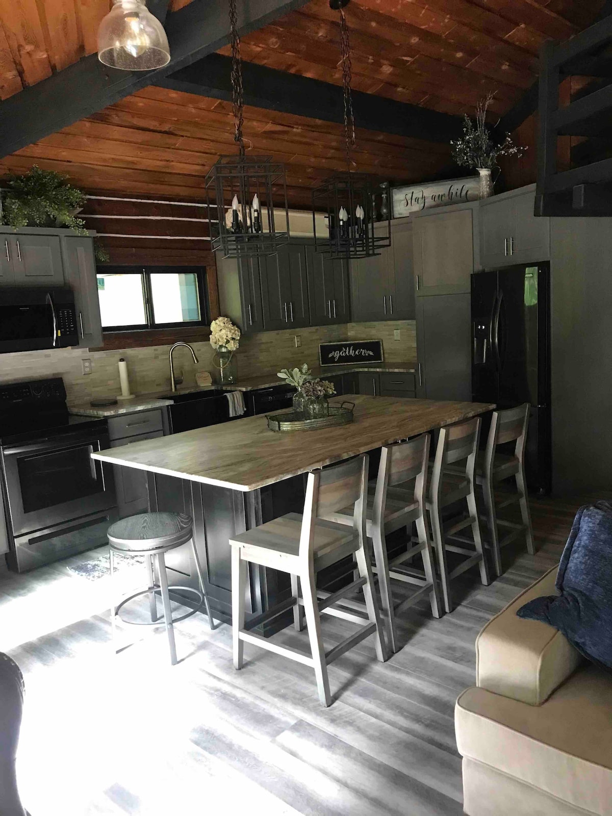 Kabin modern ini terletak di 390 kaki Sungai Ketel yang indah. Sungai ini terkenal akan tubing, berkano, dan kayak yang luar biasa. Terdapat perapian gas, bak mandi air panas, dan WiFi. Bak air panas yang lebih baru bisa menampung 6 orang. Dek luas besar dengan tempat duduk. Bon - fire pit dan pemanggang gas besar. Kabin diperbarui dan sangat nyaman. Seprai adalah peralatan Pottery Barn dan Kitchen Aid! Mesin cuci dan pengering. Tujuh hektar hutan dengan rusa dan pengumpan burung untuk satwa liar. Kabin ini luar biasa!!