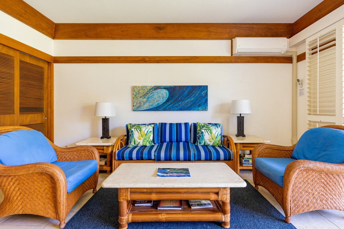 Kondominium yang menawan dan baru diperbarui dengan AC, hanya beberapa langkah dari lautan. Memadukan gaya perkebunan Hawaii yang bersejarah dengan kenyamanan modern, tempat peristirahatan yang tenang ini sangat cocok untuk keluarga, bulan madu, atau siapa pun yang mencari liburan Kauai yang damai. Dilengkapi sepenuhnya untuk pengalaman pulang - pergi - dari - rumah, kondominium ini menawarkan akses mudah ke lanskap yang rimbun, garis pantai yang menakjubkan, dan atraksi terbaik di pulau ini. Musim dingin, musim semi, musim panas, atau musim gugur - Anda pasti akan jatuh hati dengan liburan tropis yang romantis ini.