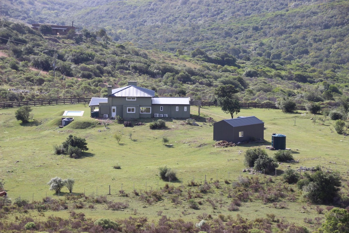 "La Remolona ", berada di" Las Sierras ", Lavalleja. Tempat istimewa untuk dinikmati bersama keluarga dengan matahari terbenam yang spektakuler, pemandangan tak berujung, dan kemungkinan berkeliling pegunungan asli, mendaki bukit, melihat ngarai, dan menemukan tempat - tempat luar biasa. Memiliki 2 kamar (1 en suite) dan mezzanine yang luas yang dapat digunakan sebagai kamar tidur atau tempat tinggal. Ruang tamu dengan kompor kayu bakar built - in di dapur. Atap besar dengan ruang makan, barbekyu dan kompor eksternal, ideal untuk malam yang tenang dan berbintang.
