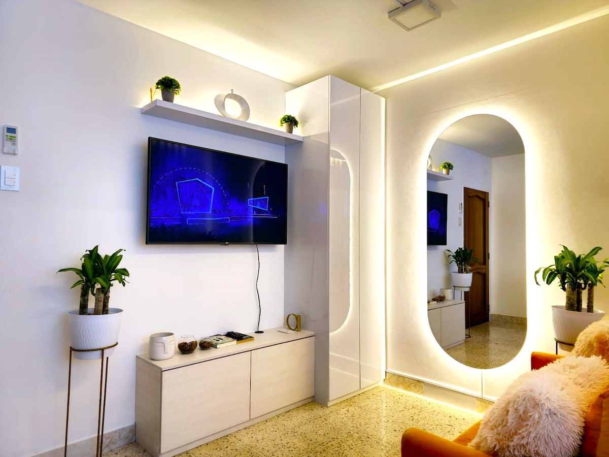 Suite modern di Riverfront 2 – Puerto Santa Ana, dengan pemandangan sungai, ideal untuk perjalanan wisata atau bisnis. Menampilkan tempat tidur berukuran King yang sangat nyaman dan sofa bed di ruang yang modern dan cerah. Termasuk Smart TV 55” di ruang tamu dan 40” di kamar tidur, Wi-Fi Netlife, AC, dapur lengkap, mesin cuci, dan keamanan 24/7. 🏊💪 Kolam renang dan pusat kebugaran tersedia sesuai jam operasional gedung. 🚗 Parkir termasuk di Santana Park, di seberang jalan. Terletak di samping Wyndham Garden Hotel.