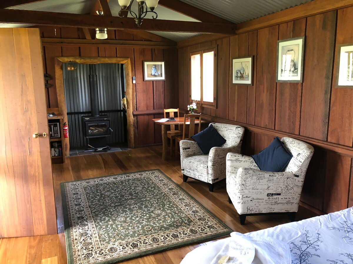 Selamat datang di The Pumphouse, kabin kami yang menyenangkan, tempat kecil yang luar biasa dalam hal kenyamanan & pesona. Nikmati lubang air yang tenang untuk menatap, mengelilingi hutan hujan yang rimbun, & alam di depan pintu Anda. Terletak di tempat yang tenang di peternakan hobi yang berfungsi, Anda dapat melihat ternak, kehidupan burung, rusa, walabi & echidna. Tempat peristirahatan unik yang tak terlupakan bagi pecinta alam & pecinta relaksasi, termasuk bayi bulu Anda (diizinkan masuk). Disediakan sarapan & semua kayu bakar/kayu bakar.