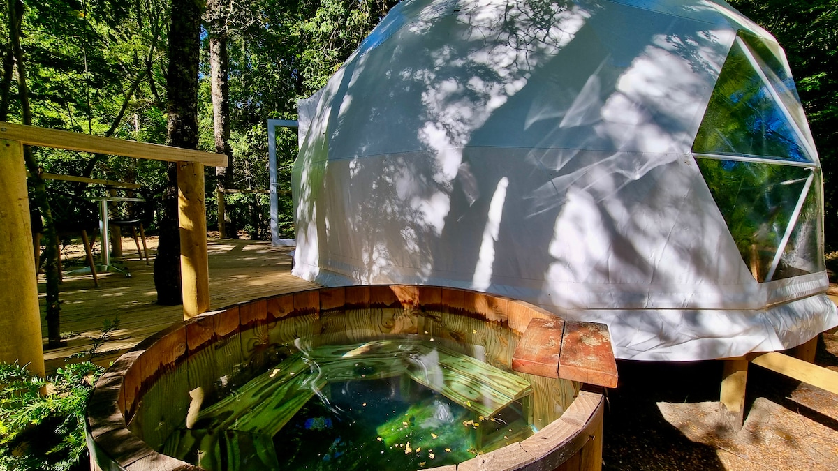 Kubah baru kami untuk dua, tiga orang menawarkan pengalaman unik. Bangun dengan pemandangan hutan yang spektakuler, dikelilingi oleh ketenangan alam. Bersantai di toples pribadi Anda, nikmati lingkungan sekitar sambil berendam dalam air hangat. Kubah ini memiliki kamar mandi pribadi dan teras eksklusif, cocok untuk momen istirahat dan koneksi dengan lingkungan sekitar. Tempat ini menjamin kenyamanan dan privasi, menjadikan masa inap Anda istimewa.