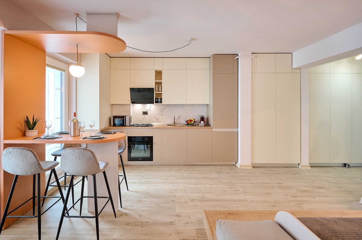 Selamat datang di apartemen nyaman kami yang menampilkan dua kamar yang didekorasi dengan indah, suasana kayu, dan sejumlah tanaman untuk menciptakan suasana yang menyegarkan. Apartemen ini bisa menampung 4 orang dewasa dan 1 anak dengan nyaman. Sofa ruang tamu tidak hanya dapat diperluas tetapi juga sepenuhnya berubah menjadi tempat tidur dengan kasur sendiri. Ruang tamu yang nyaman, suasana berkayu, dan tanaman di sekitarnya menjadikan apartemen ini tempat peristirahatan yang sempurna setelah seharian menjelajahi kota atau bersantai di pantai.