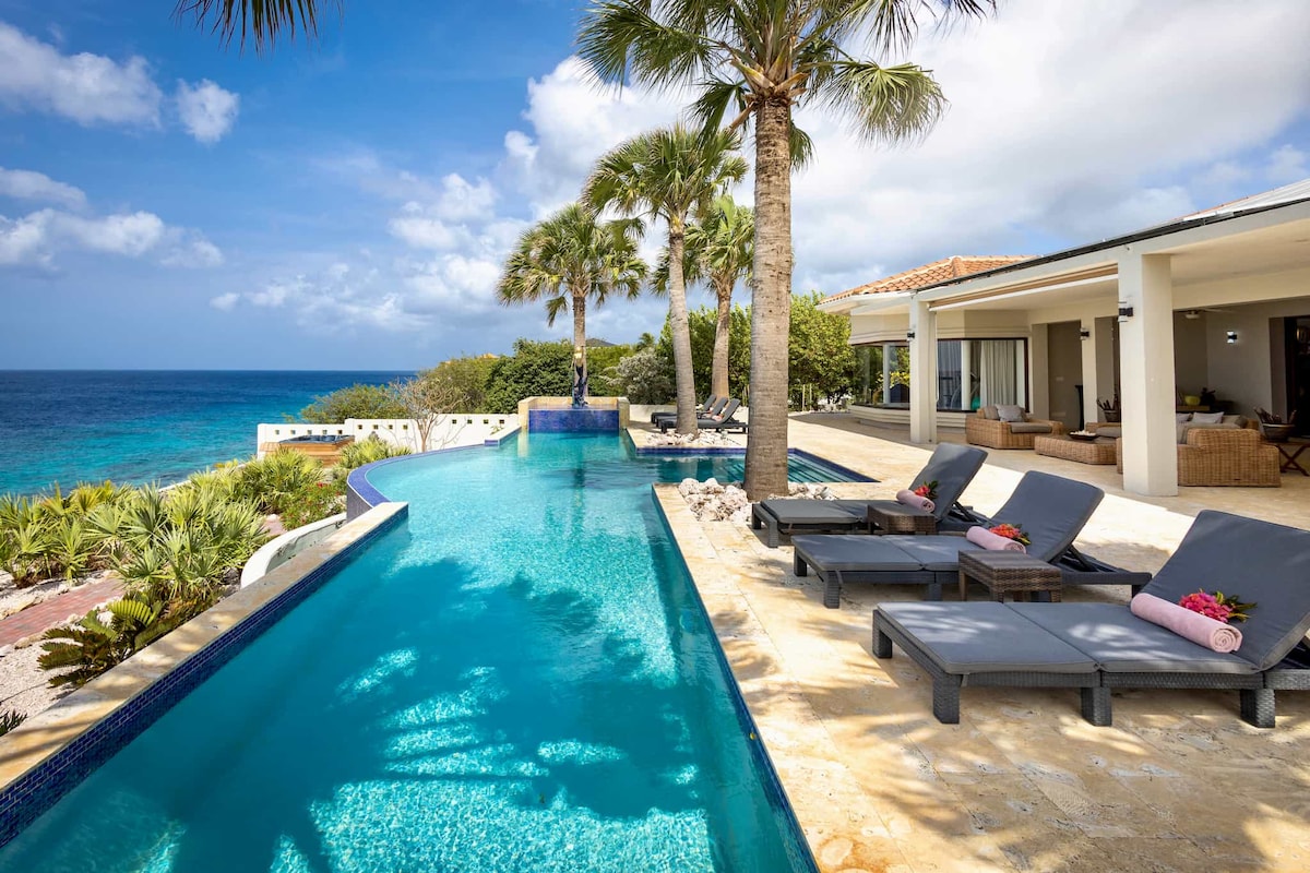 Apartemen dua kamar tidur mewah modern baru kami dengan pemandangan laut terletak di The Reef. The Reef menawarkan hal - hal berikut: ◗ Berada di tempat yang sepenuhnya aman 24/7 Blue Bay Curaçao Golf & Beach Resort ◗ Kolam renang dengan pemandangan laut dan taman tropis yang indah Dekorasi ◗modern dengan furnitur baru ◗Wifi & TV gratis◗ 1 menit berkendara ke Blue Bay Beach (jalur pantai gratis). ◗5 menit berkendara ke Supermarket dengan ATM & Toko Obat ◗10 menit berkendara ke Punda bersejarah dan Pietermaai yang ramai untuk restoran, berbelanja dan keluar