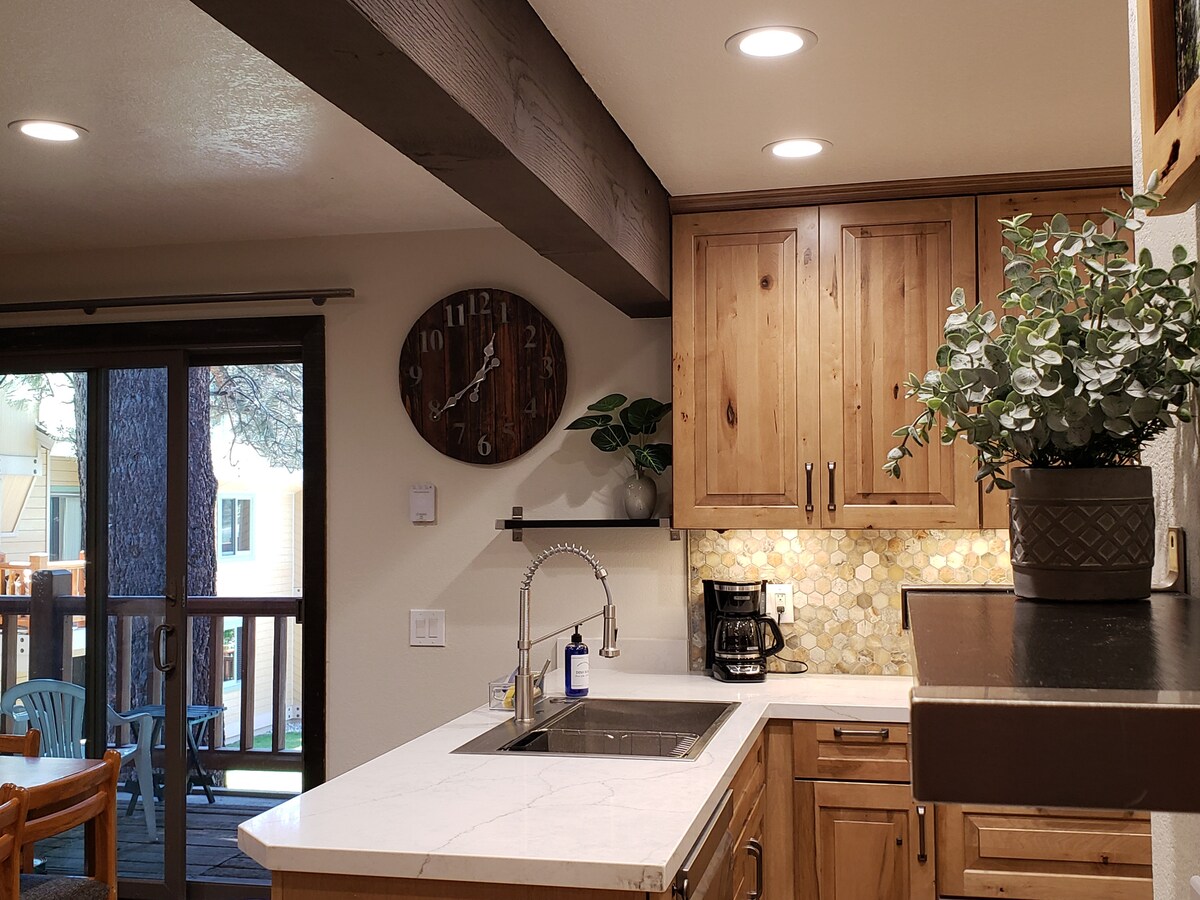 Kondominium Modern, 1BR/1BA Village - resor #1 di Mammoth. Smart TV, WIFI yang luar biasa, & sofa Kulit Amerika adalah tempat tidur paling nyaman di dunia. Langkah - langkah menuju gondola, restoran populer, Shelter Distillery, Mammoth Brewery, pusat perbelanjaan, penitipan anak, pijat, & kopi. Koki akan menyukai dapur lengkap, pembuat kopi (drip, K - cup, Nespresso), panci/wajan, dll. Termasuk akses ke kolam renang, spa, pusat kebugaran dengan Peloton, cucian koin, penyimpanan sepeda/ski, ruang media & permainan.