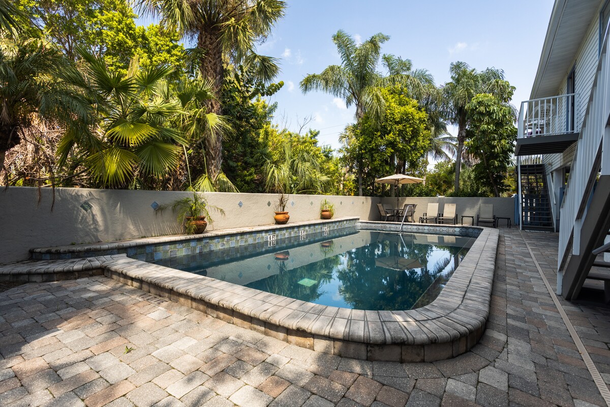 Tempat yang sempurna untuk mengangkat kaki Anda dan bersantai! Salah satu dari empat unit di kondominium memberi Anda perasaan pribadi di mana Anda tidak berbagi kolam renang berpemanas dengan banyak unit lainnya, di jalan buntu. Satu - satunya unit yang menghadap kolam renang dari kamar tidur utama. Anda hanya akan berada satu blok dari pantai sehingga tergoda untuk pergi beberapa kali dalam sehari! Dekorasi yang bersih dan modern menjadikannya tempat yang bagus untuk pengunjung jangka pendek dan jangka panjang. Hanya jalur alam yang jauh dari toko bahan, toko, dan restoran.
